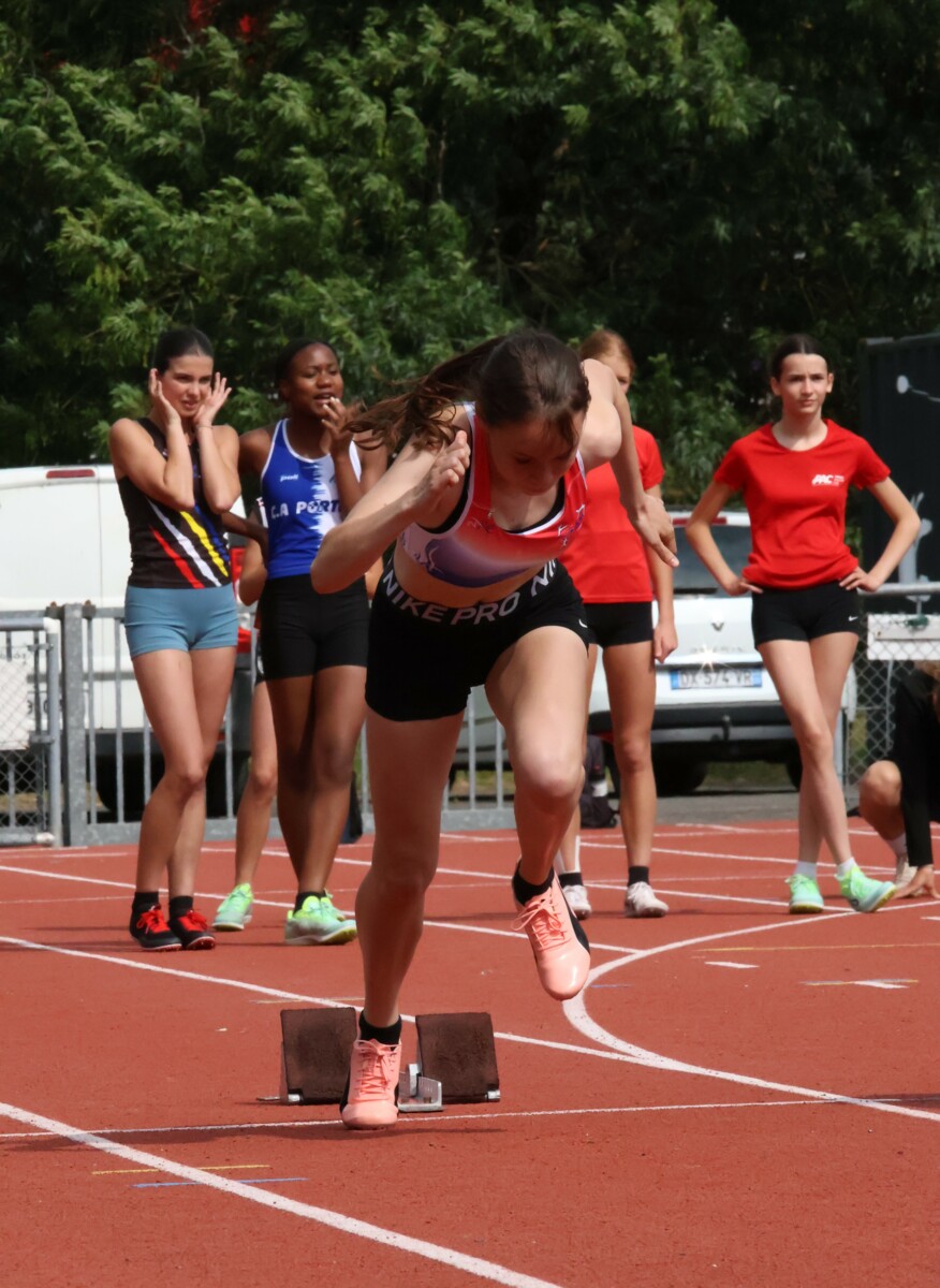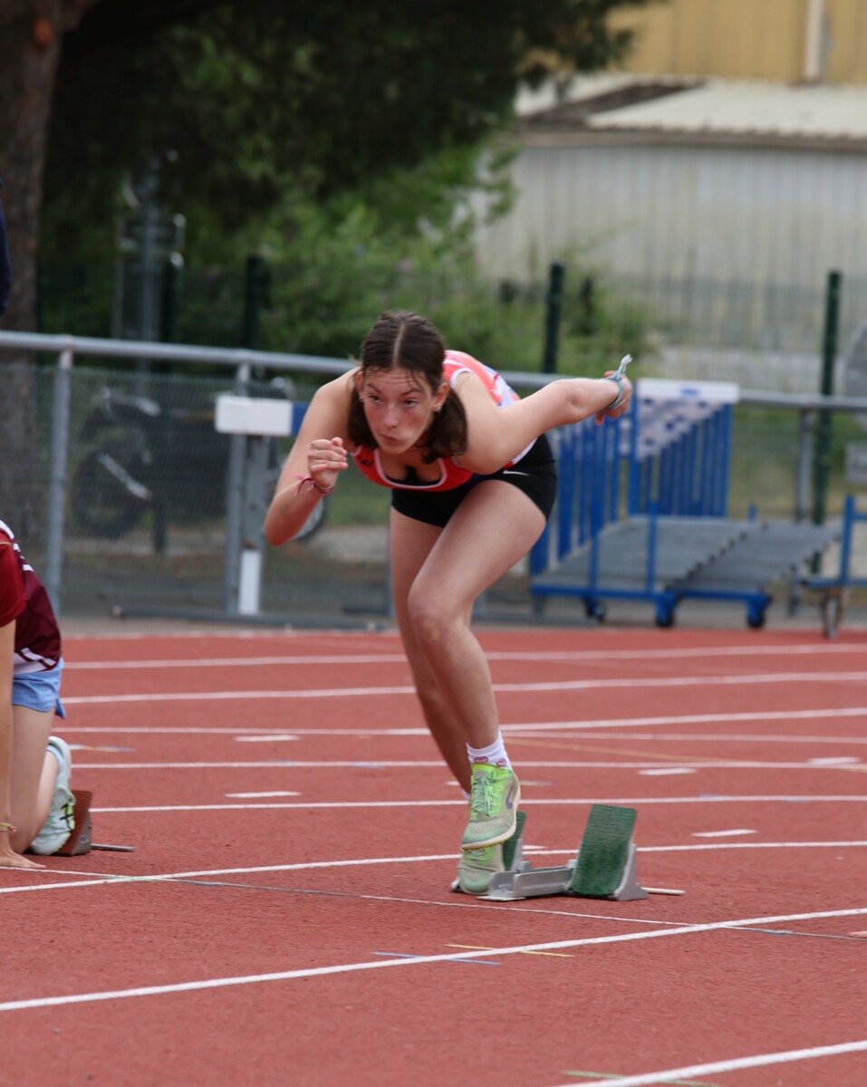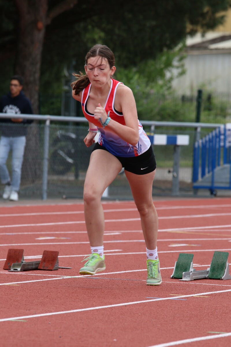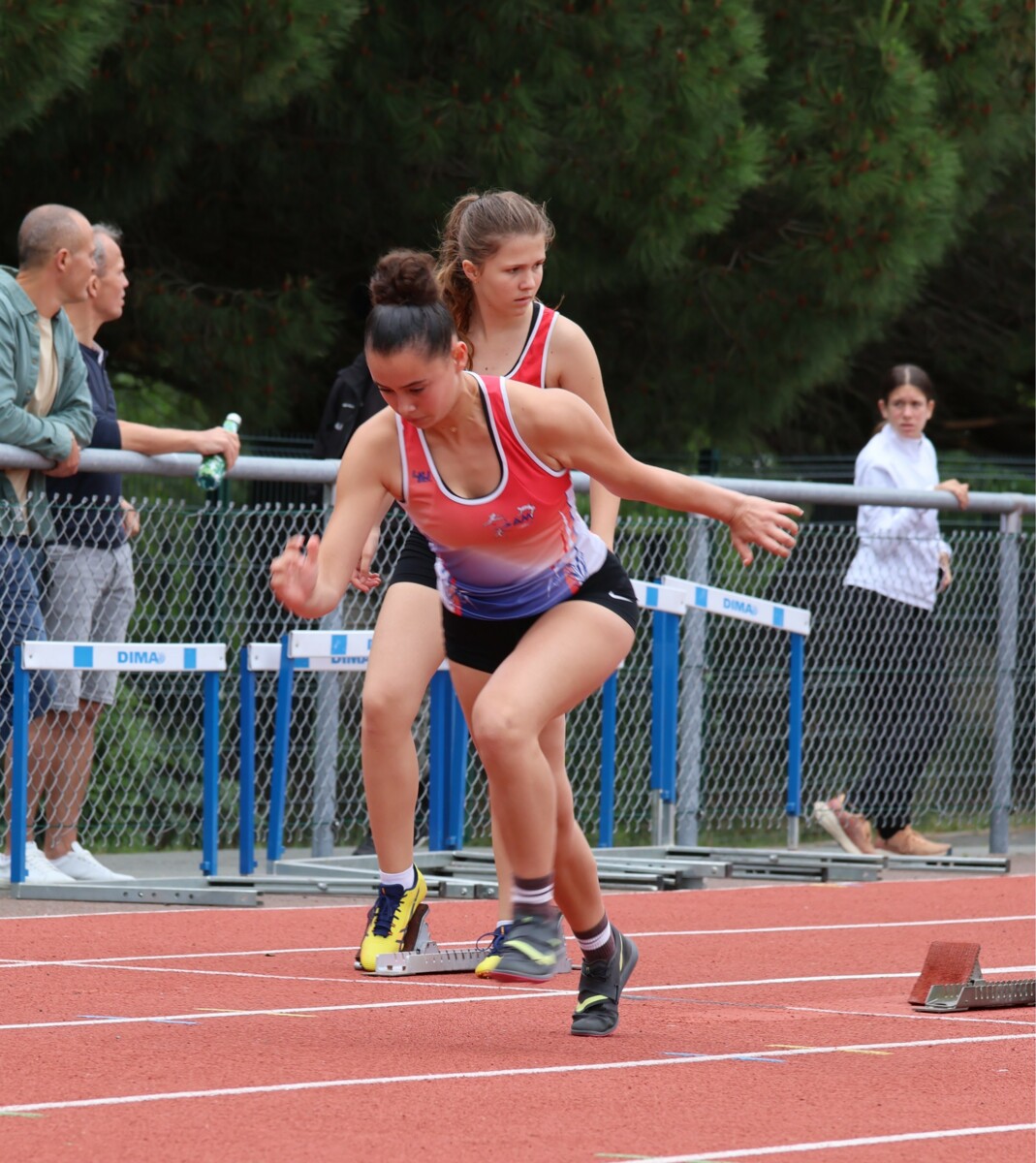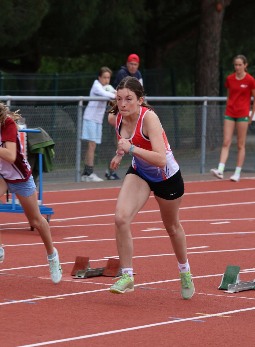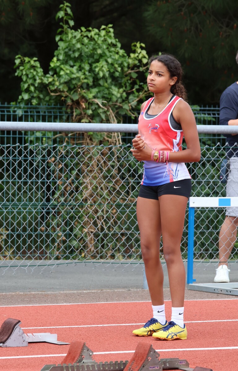 Au niveau résultats, la palme revient à Coline qui gagne le 80m, la longueur et termine 2e du disque chez les 2010. Elle continue de surprendre tout le monde. Nous avions prévu une journée tranquille en vue de la semaine prochaine où elle enchainera à Agen le 80m, le 80m haies et la longueur avec l'objectif de faire mieux que 120 pts. Elle ne participera à aucune finale ce jour-là pour donner son maximum sur le triathlon.