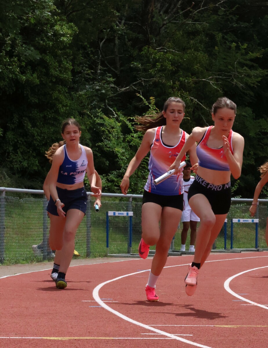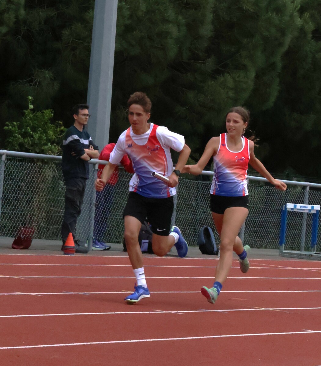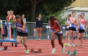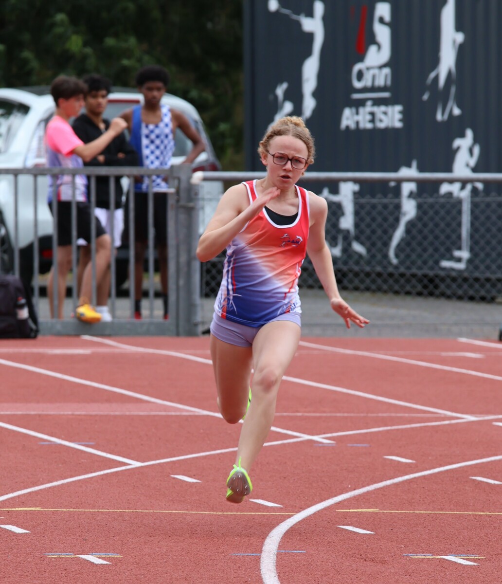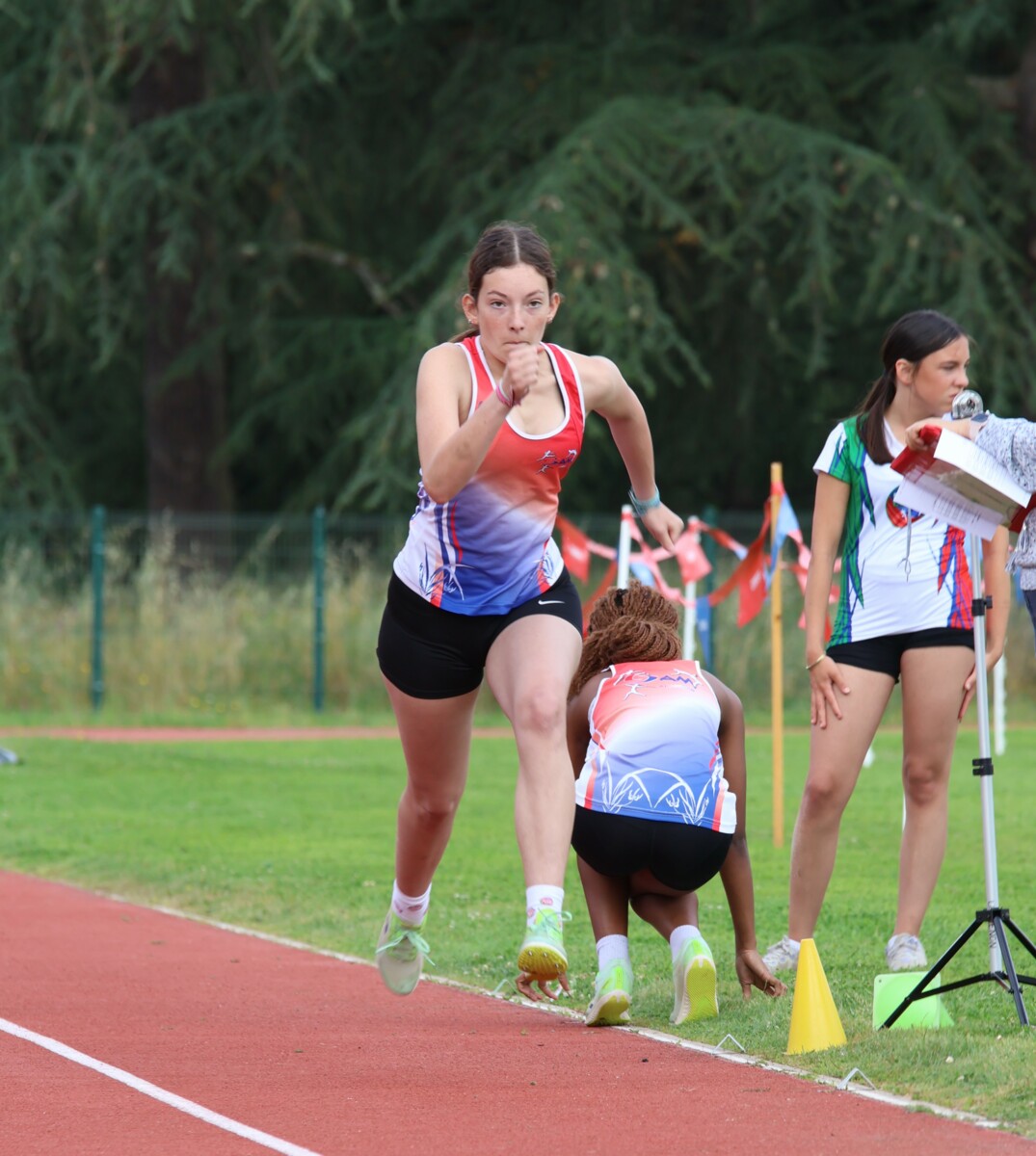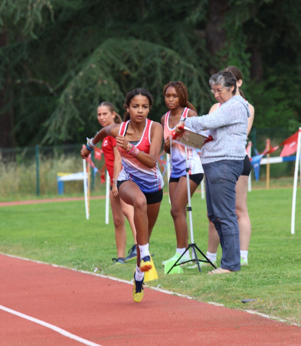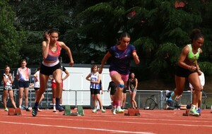Au niveau résultats, la palme revient à Coline qui gagne le 80m, la longueur et termine 2e du disque chez les 2010. Elle continue de surprendre tout le monde. Nous avions prévu une journée tranquille en vue de la semaine prochaine où elle enchainera à Agen le 80m, le 80m haies et la longueur avec l'objectif de faire mieux que 120 pts. Elle ne participera à aucune finale ce jour-là pour donner son maximum sur le triathlon.