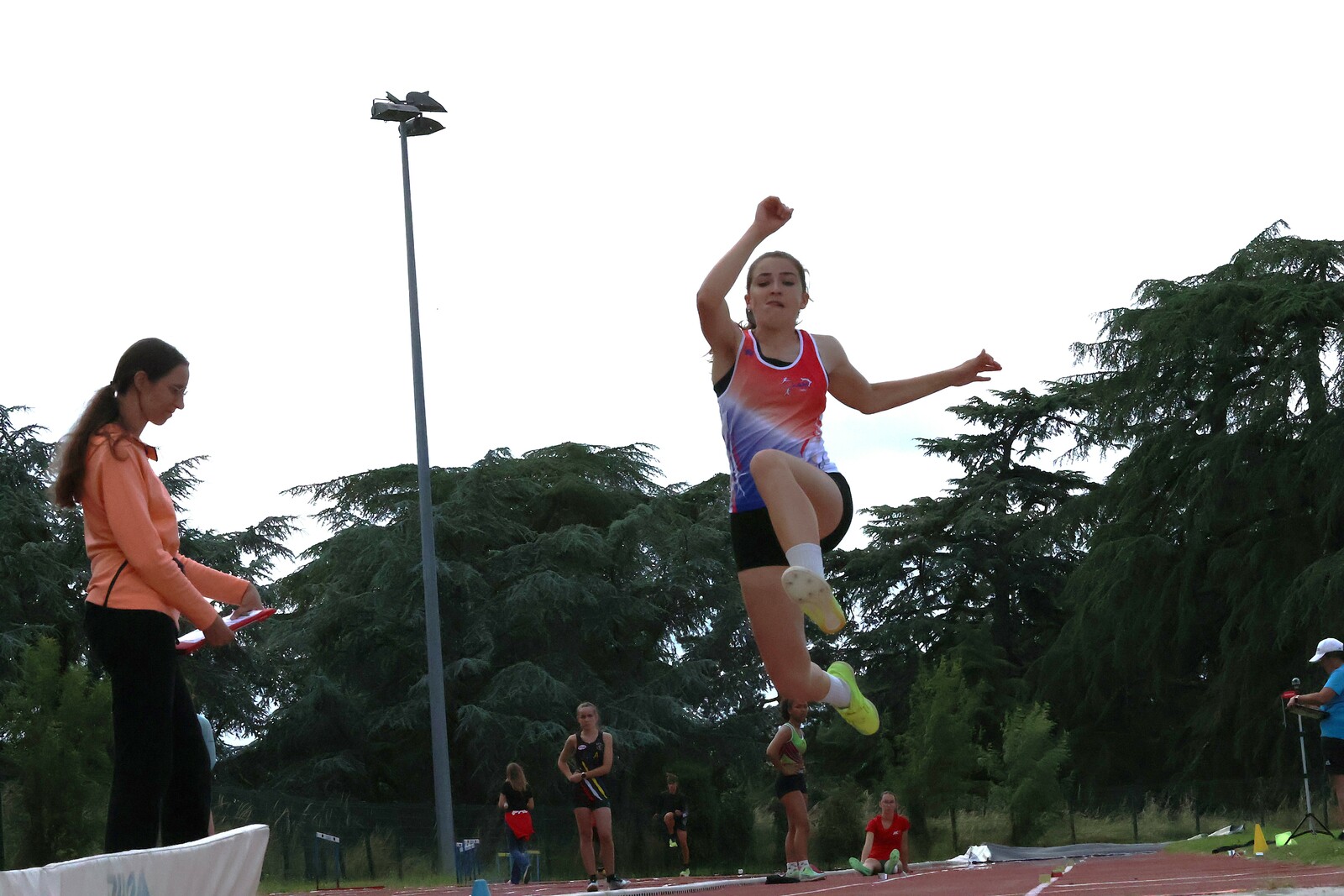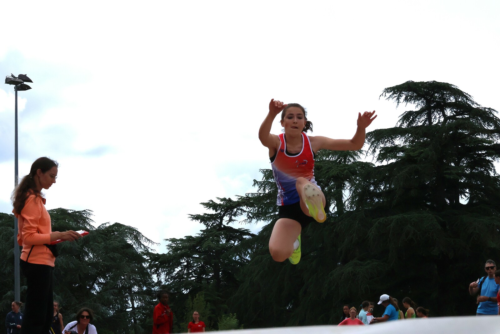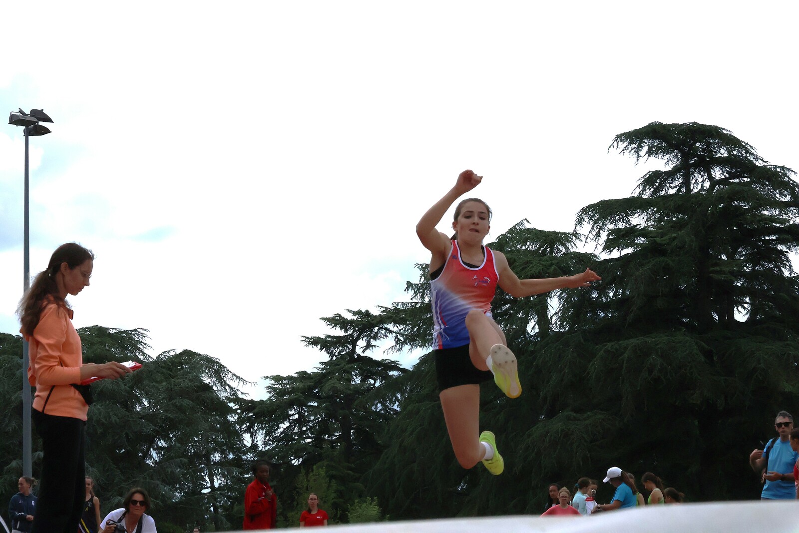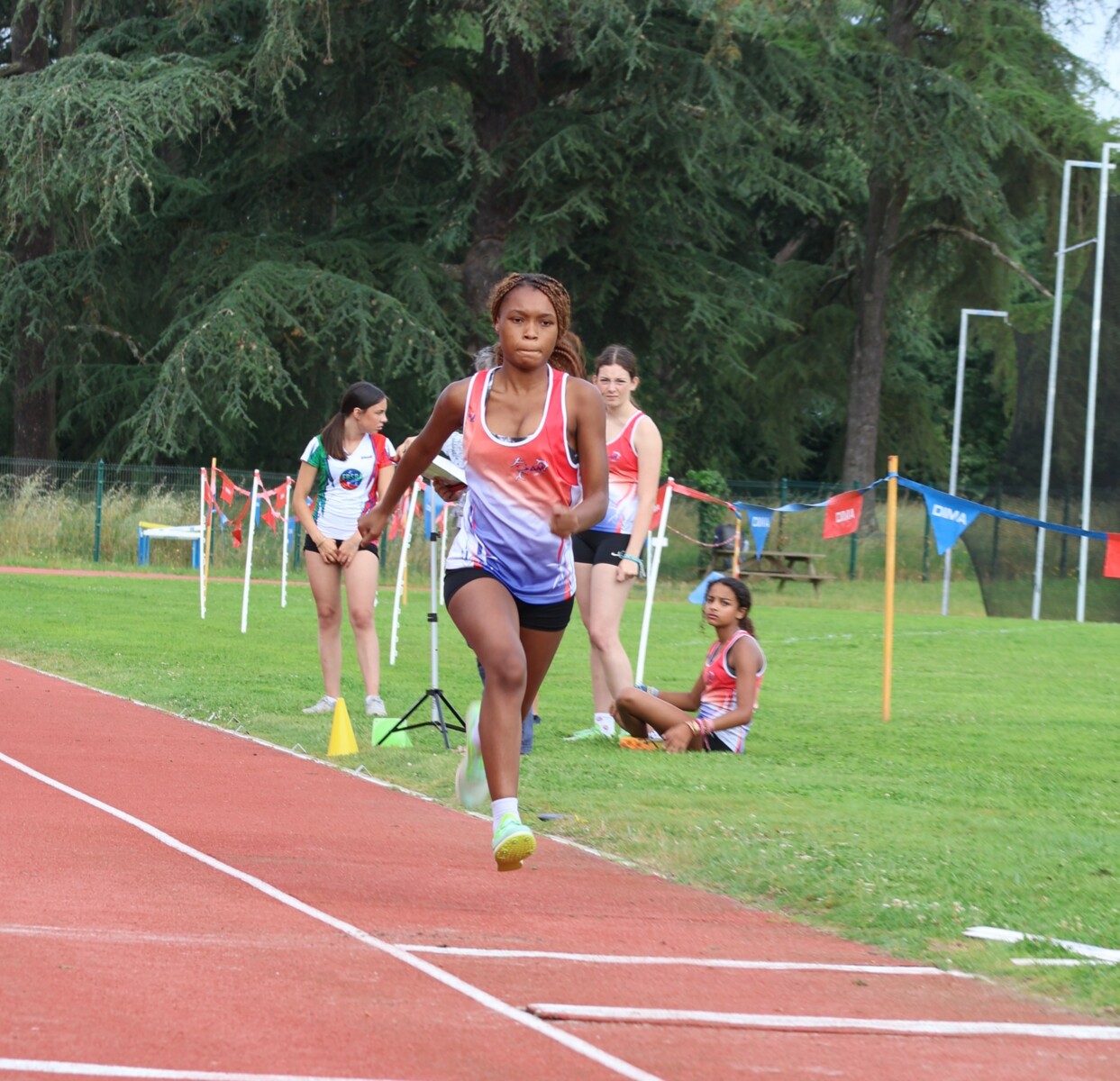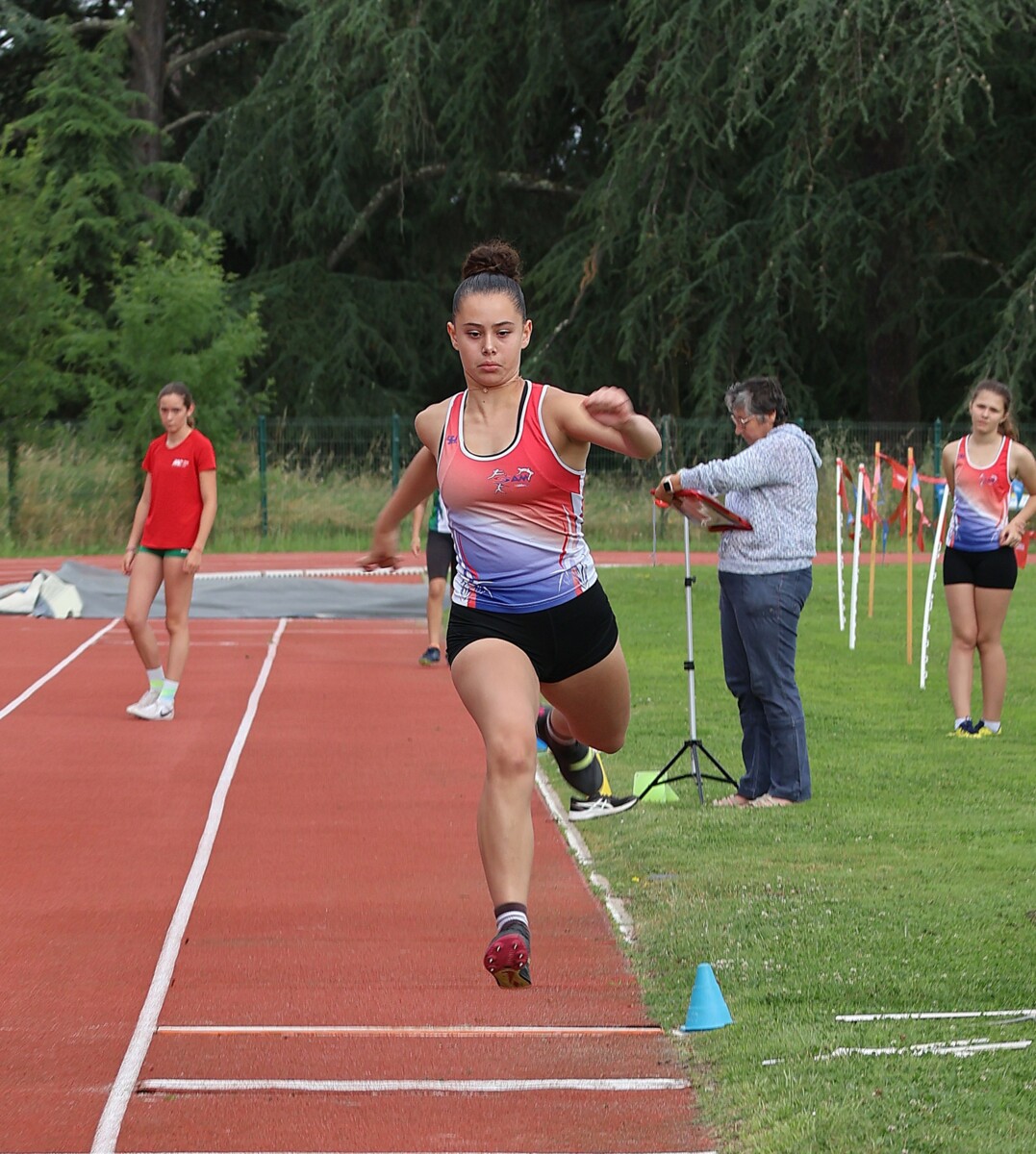 Au niveau résultats, la palme revient à Coline qui gagne le 80m, la longueur et termine 2e du disque chez les 2010. Elle continue de surprendre tout le monde. Nous avions prévu une journée tranquille en vue de la semaine prochaine où elle enchainera à Agen le 80m, le 80m haies et la longueur avec l'objectif de faire mieux que 120 pts. Elle ne participera à aucune finale ce jour-là pour donner son maximum sur le triathlon.