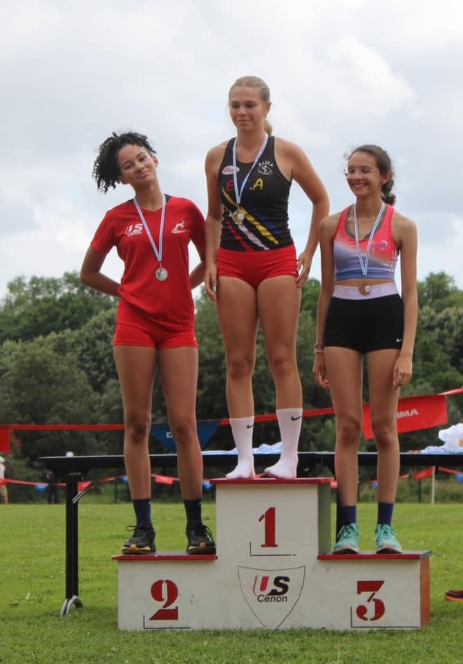 Jade termine sur le podium au disque avec 23m04. Mais il faut rester confiante, ça va revenir. Elle a lancé cette semaine à plus de 29m à l'entraînement, mais en compétition, ça bloque et ce n'est pas l'envie de bien faire qui lui manque.