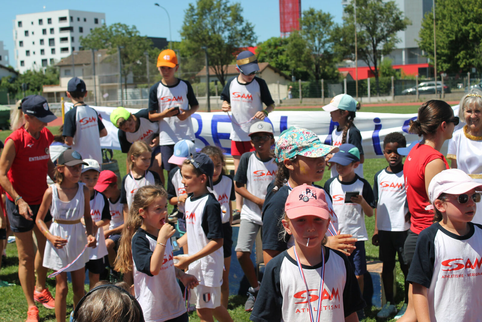 En ce samedi matin lumineux, les jeunes héros du SAM ont quitté leur cité pour rejoindre les terres de Bègles, où les attendait une grande épopée athlétique placée sous le regard bienveillant des dieux de l’Olympe.