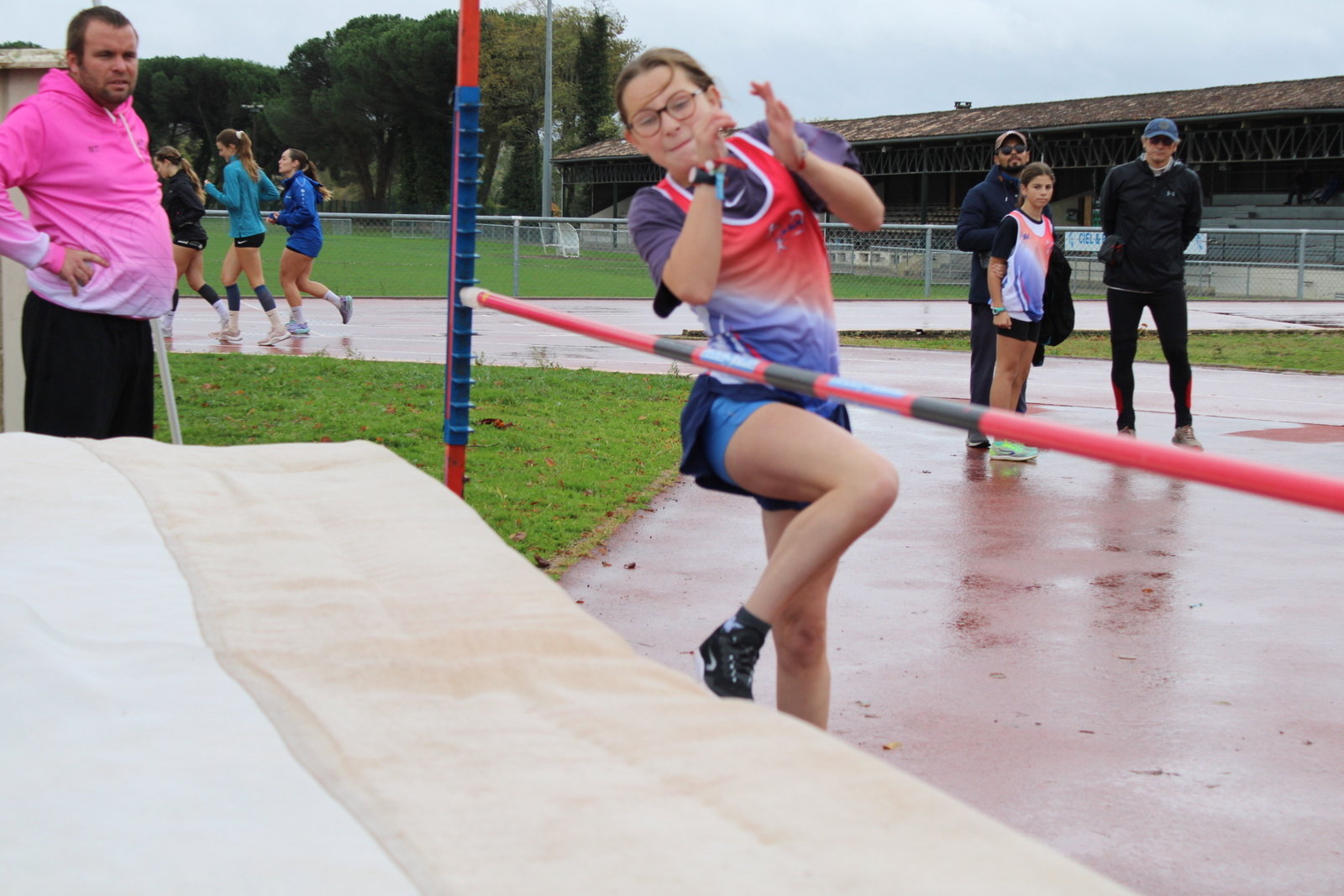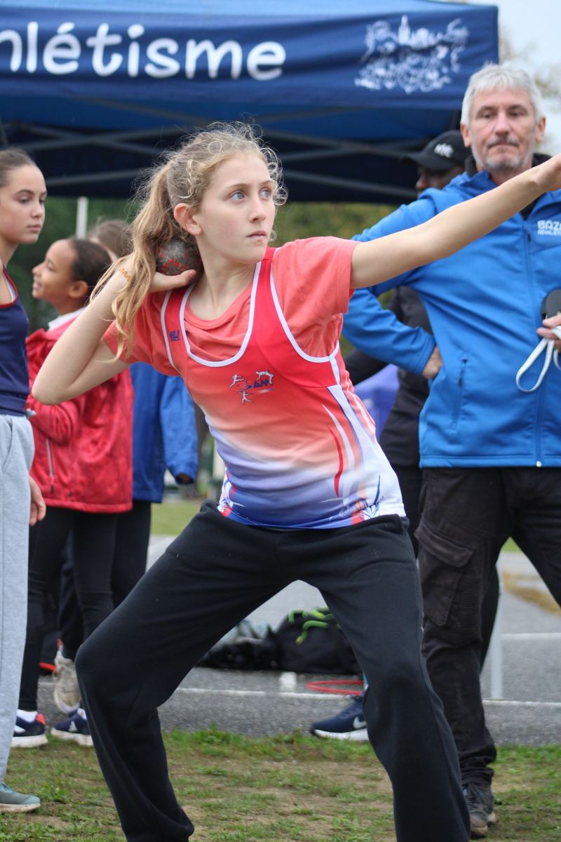 Au programme : 50 m, saut en hauteur, lancer de poids et 1000 m pour conclure. Un enchaînement exigeant, surtout sous les averses, mais nos jeunes athlètes ont relevé le défi avec brio !