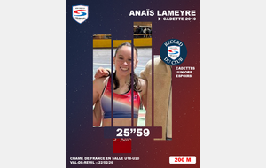Le dimanche, Anaïs bat un second record du club, sur 200m, en 25''59 (à 9 h du matin) et s'empare des records du club juniors et espoirs en effaçant des tablettes un record datant de 1988 (25''63). Elle termine à 4 centièmes d'une place en finale. Très prometteur pour Anaïs, qui découvre encore ces disciplines.