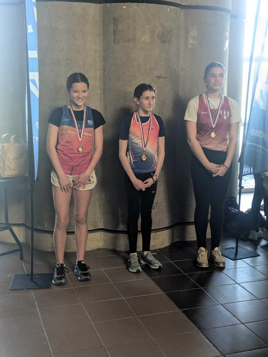 Elaïa Bourhis-Parenteau, benjamine première année, est championne de Gironde sur le 1000m et au saut en hauteur.