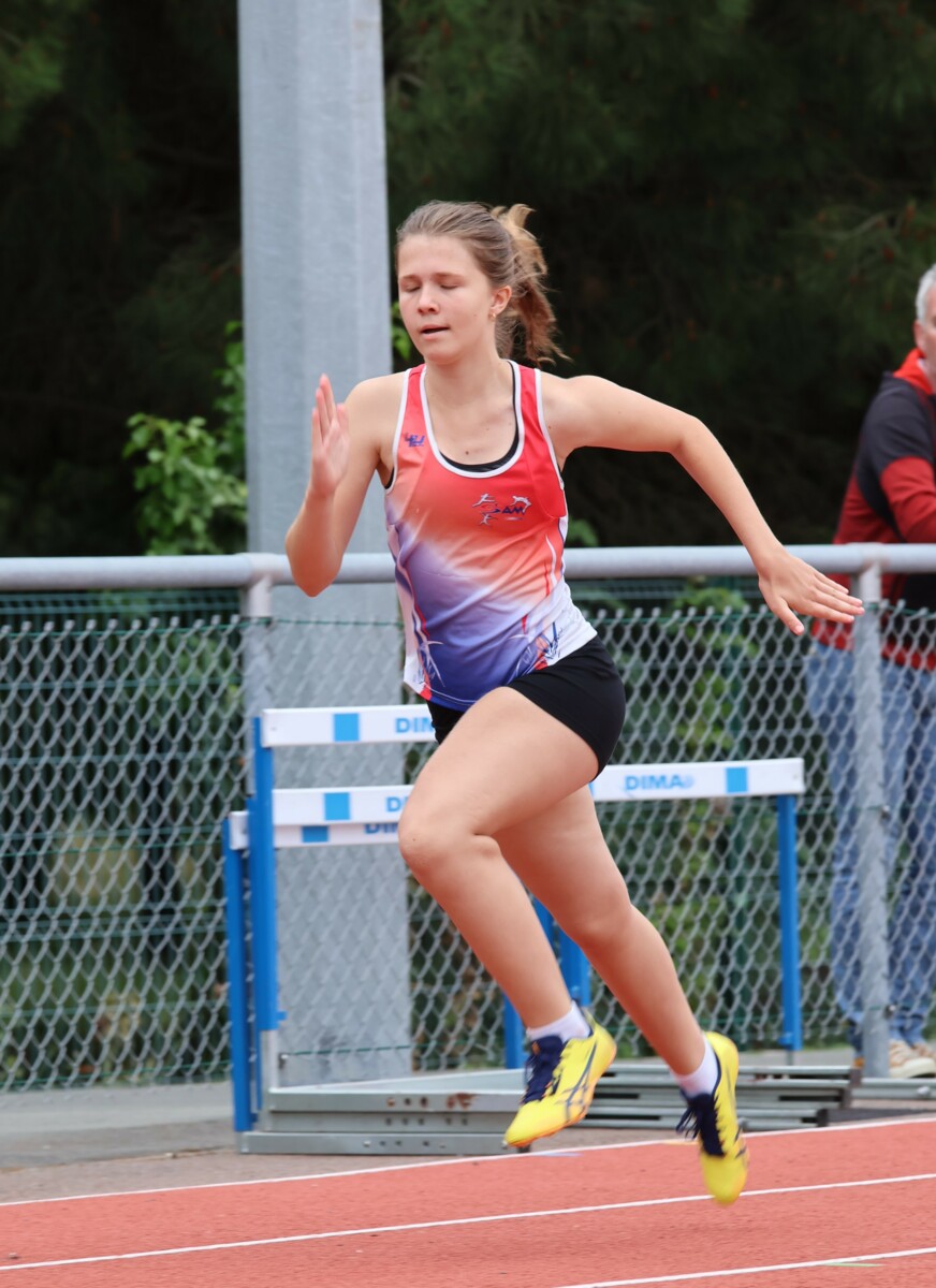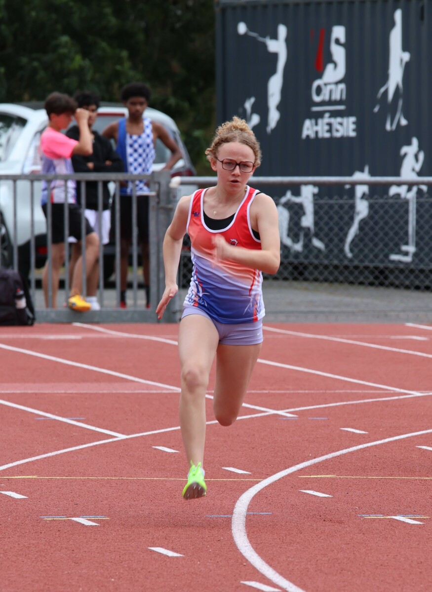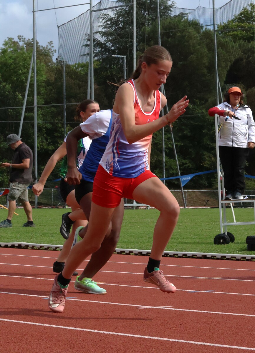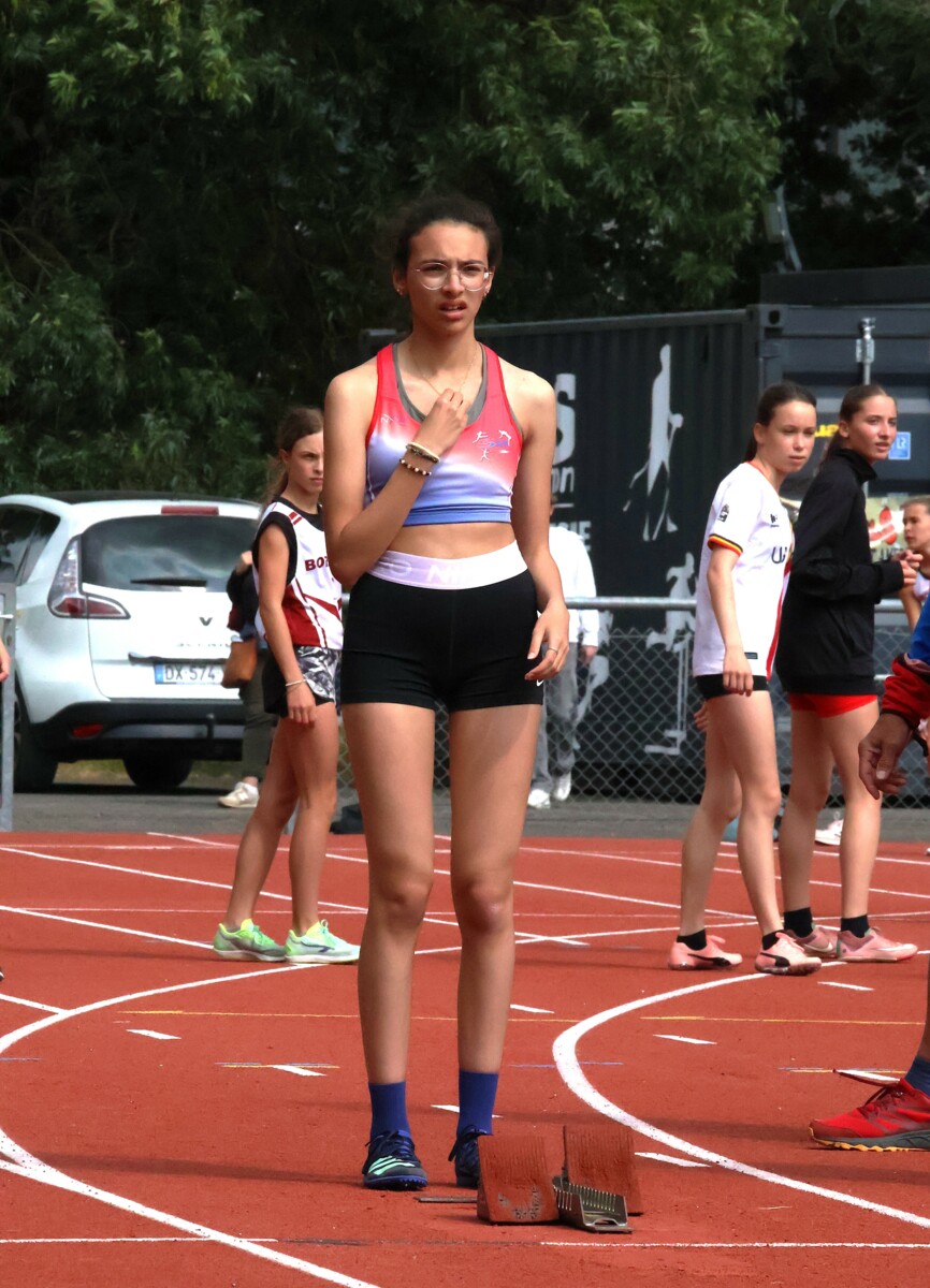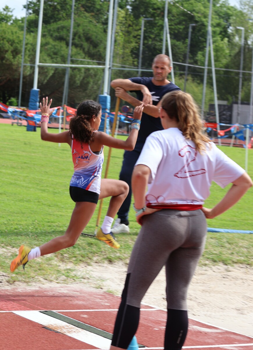 Au niveau résultats, la palme revient à Coline qui gagne le 80m, la longueur et termine 2e du disque chez les 2010. Elle continue de surprendre tout le monde. Nous avions prévu une journée tranquille en vue de la semaine prochaine où elle enchainera à Agen le 80m, le 80m haies et la longueur avec l'objectif de faire mieux que 120 pts. Elle ne participera à aucune finale ce jour-là pour donner son maximum sur le triathlon.