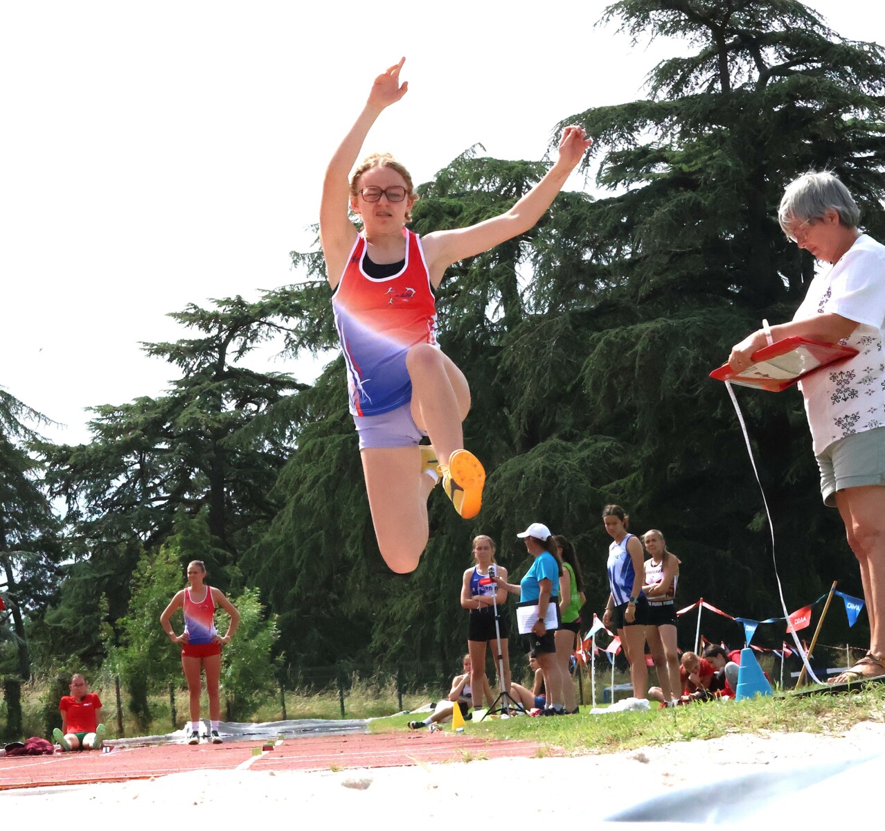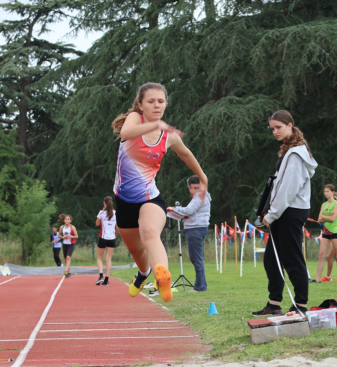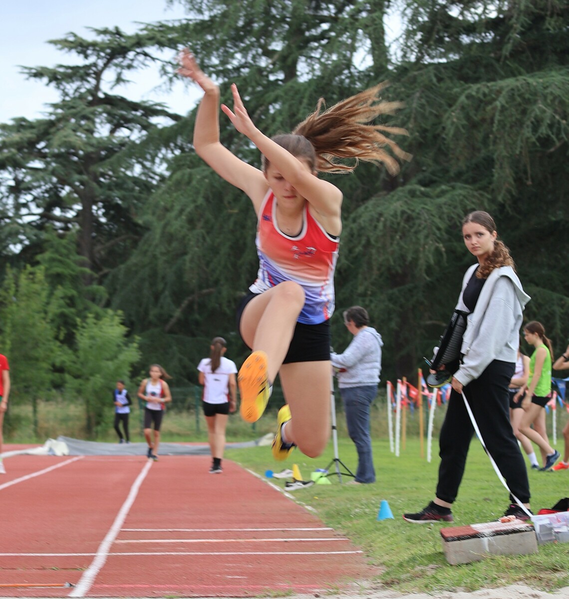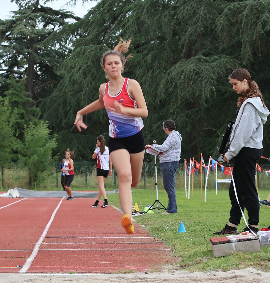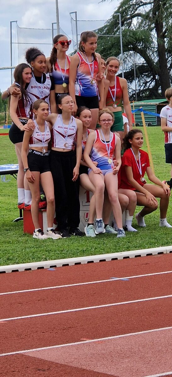 Au niveau résultats, la palme revient à Coline qui gagne le 80m, la longueur et termine 2e du disque chez les 2010. Elle continue de surprendre tout le monde. Nous avions prévu une journée tranquille en vue de la semaine prochaine où elle enchainera à Agen le 80m, le 80m haies et la longueur avec l'objectif de faire mieux que 120 pts. Elle ne participera à aucune finale ce jour-là pour donner son maximum sur le triathlon.