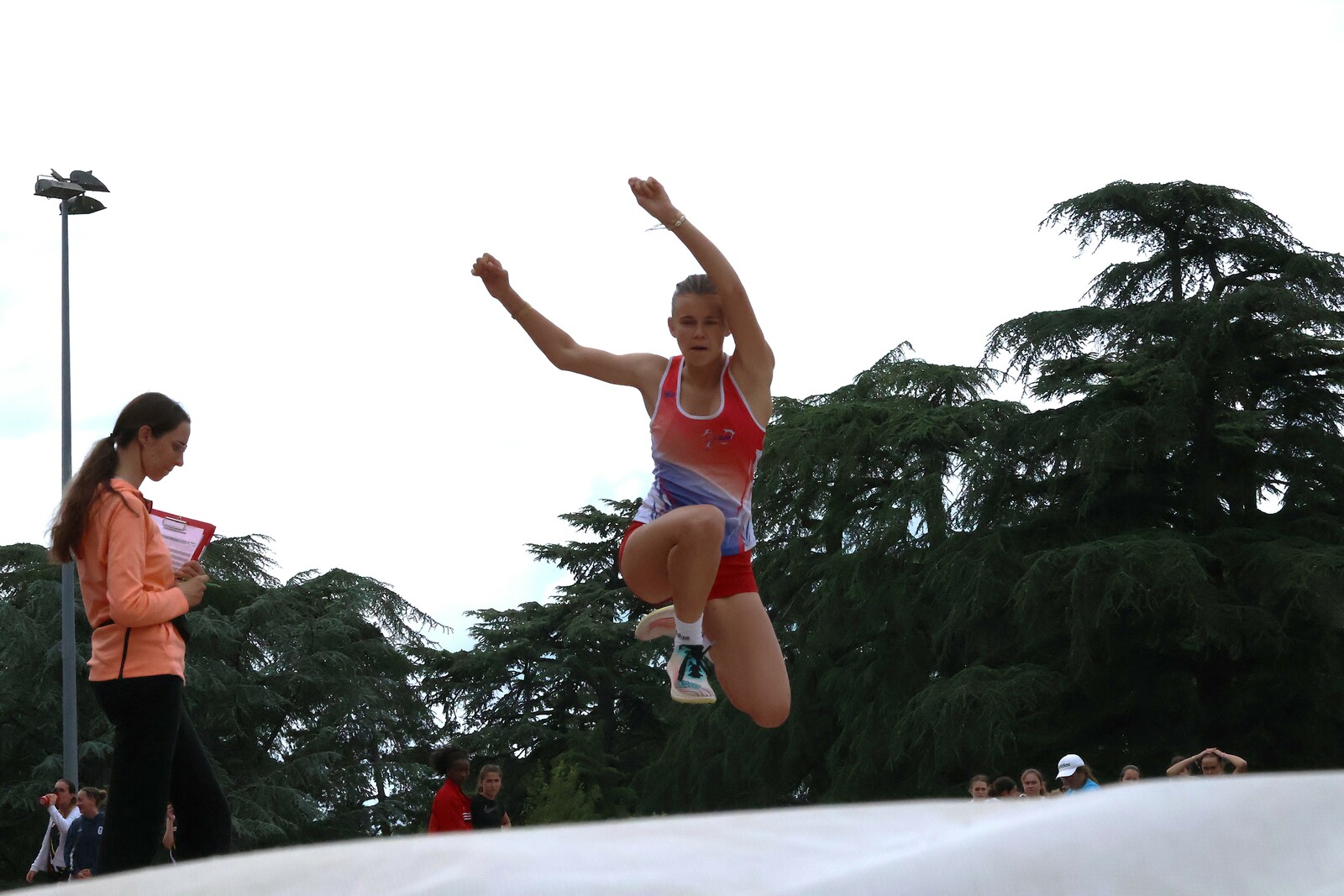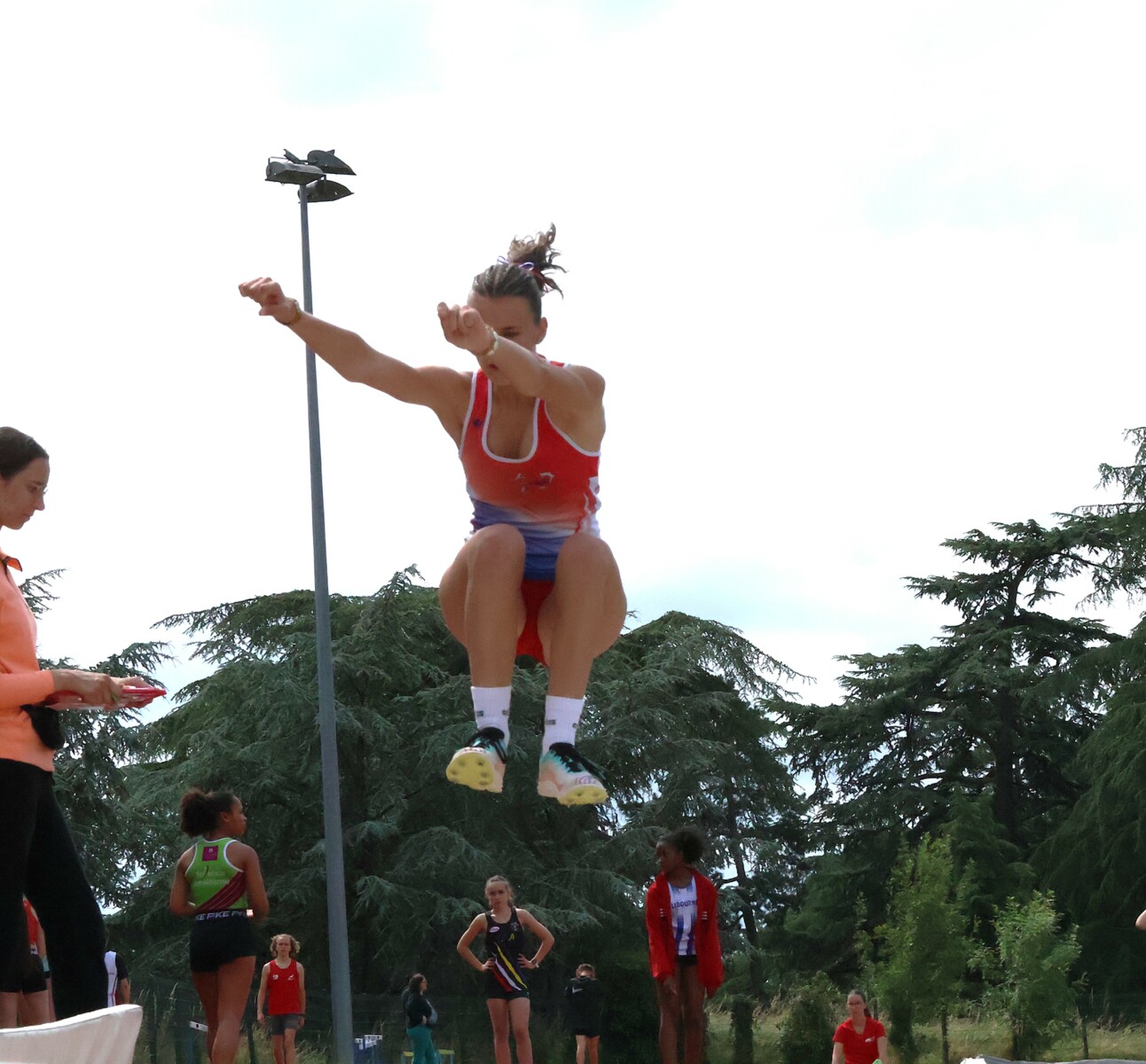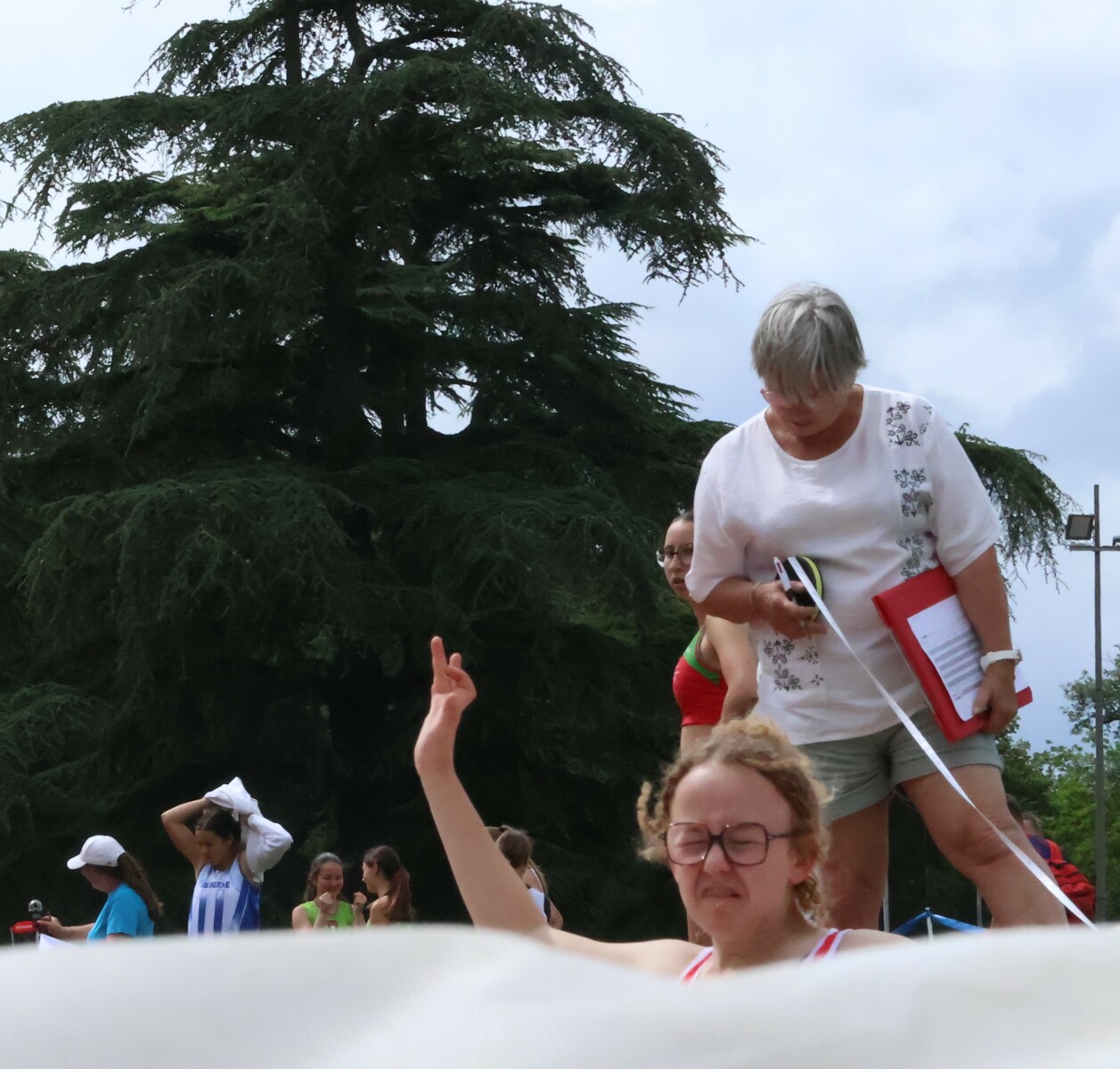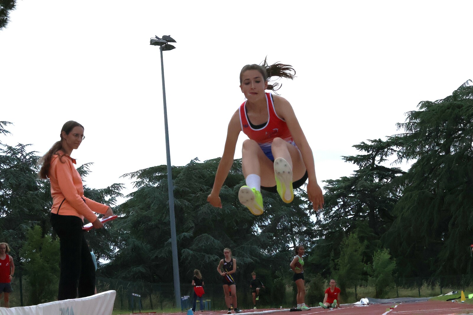 Au niveau résultats, la palme revient à Coline qui gagne le 80m, la longueur et termine 2e du disque chez les 2010. Elle continue de surprendre tout le monde. Nous avions prévu une journée tranquille en vue de la semaine prochaine où elle enchainera à Agen le 80m, le 80m haies et la longueur avec l'objectif de faire mieux que 120 pts. Elle ne participera à aucune finale ce jour-là pour donner son maximum sur le triathlon.