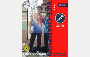 Luka Vignaux est vice-champion régional sur 200m et 4e sur 60m.