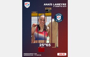 - LACOURRÈGE-MOULIN Maxime (cadet 1re année) : 200m en 25''27