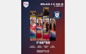 Jade PLANTEY, Anaïs LAMEYRE, Lucile CHAZEAUD et Juliette ADAM ont battu un record datant de 1985 (1'52''00) en 1'48''89. Elles sont toutes les quatre cadettes 1re année.